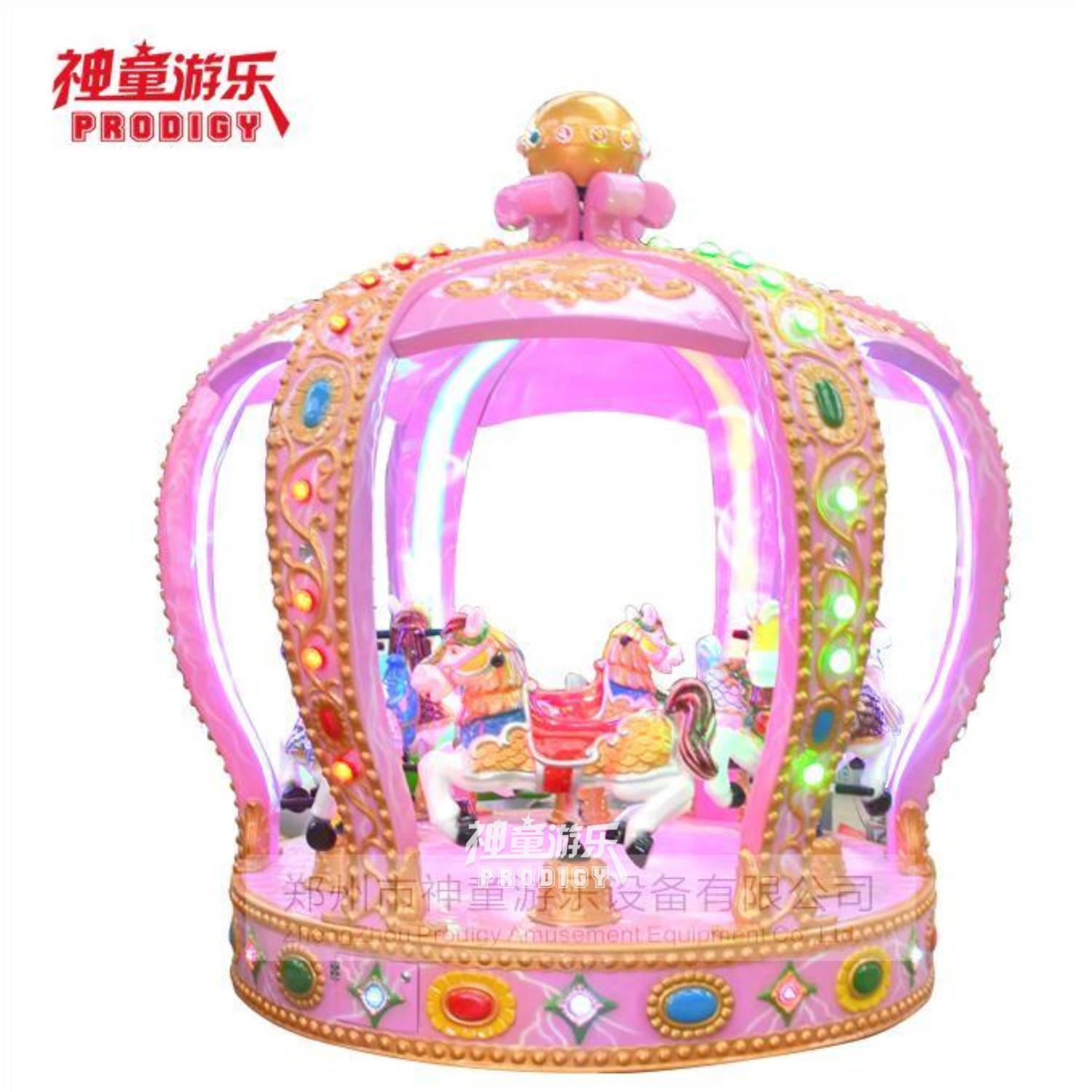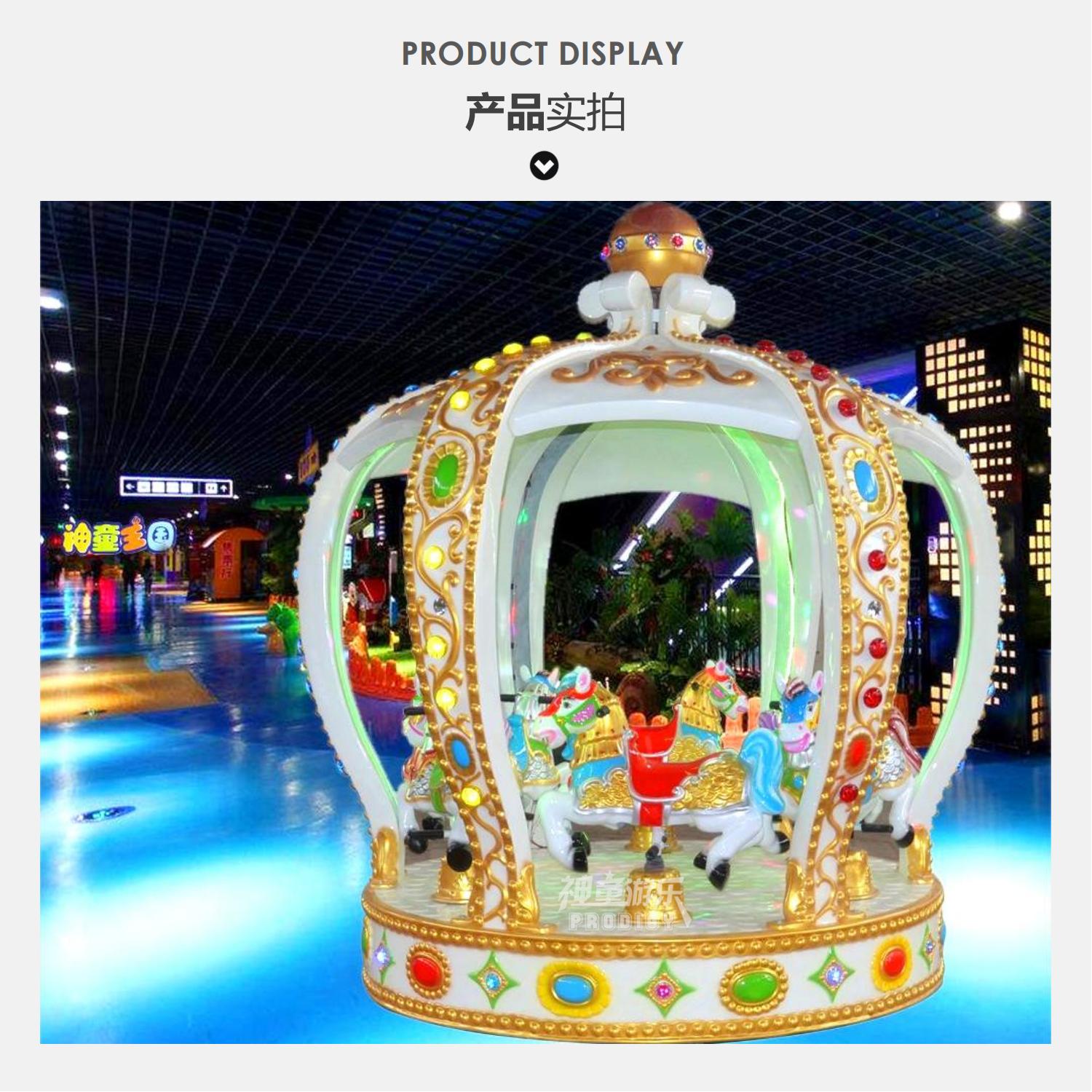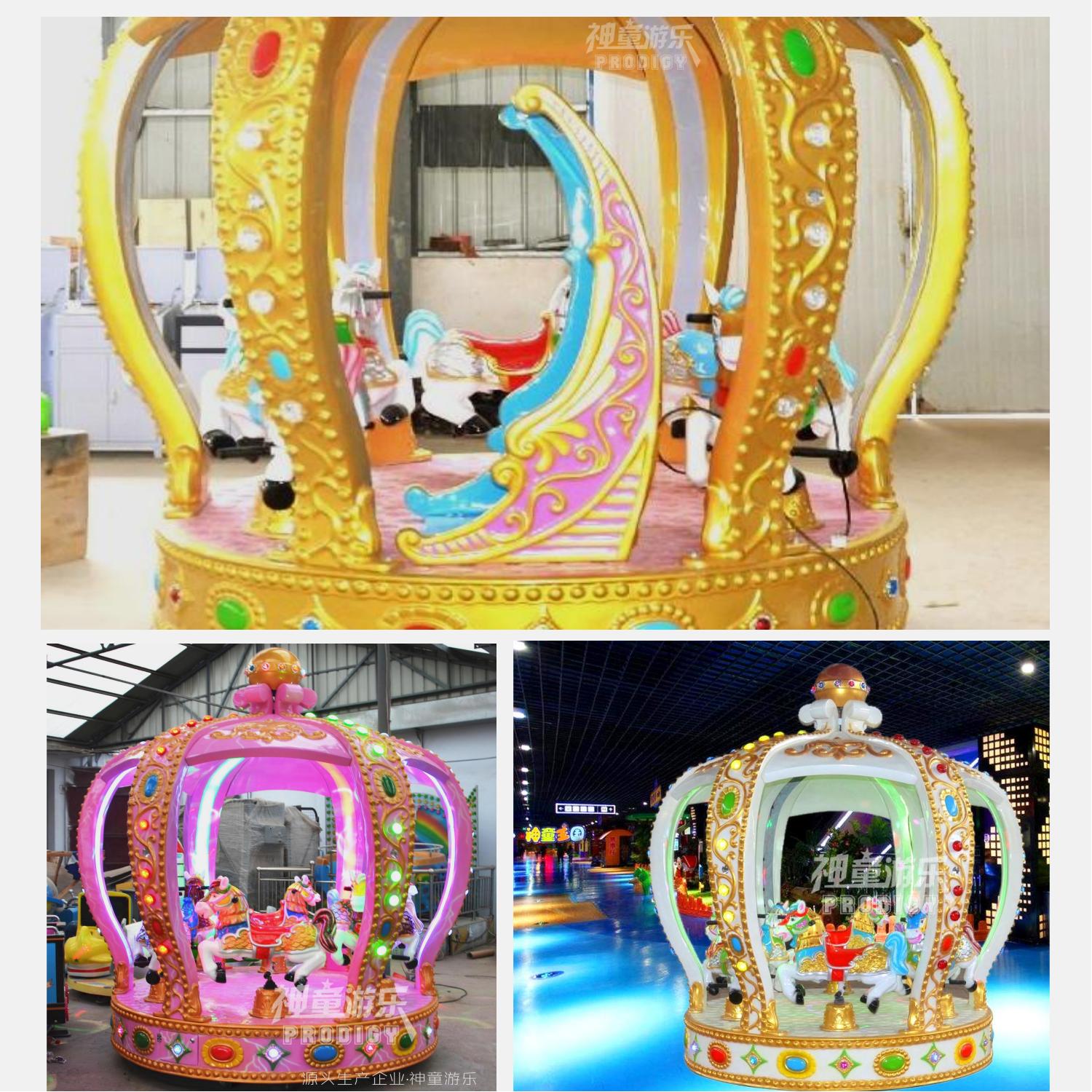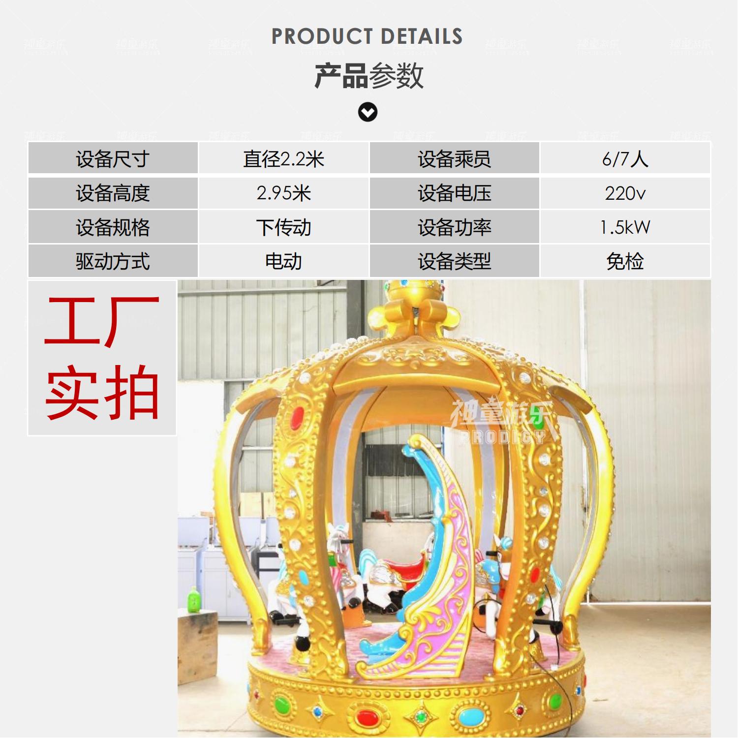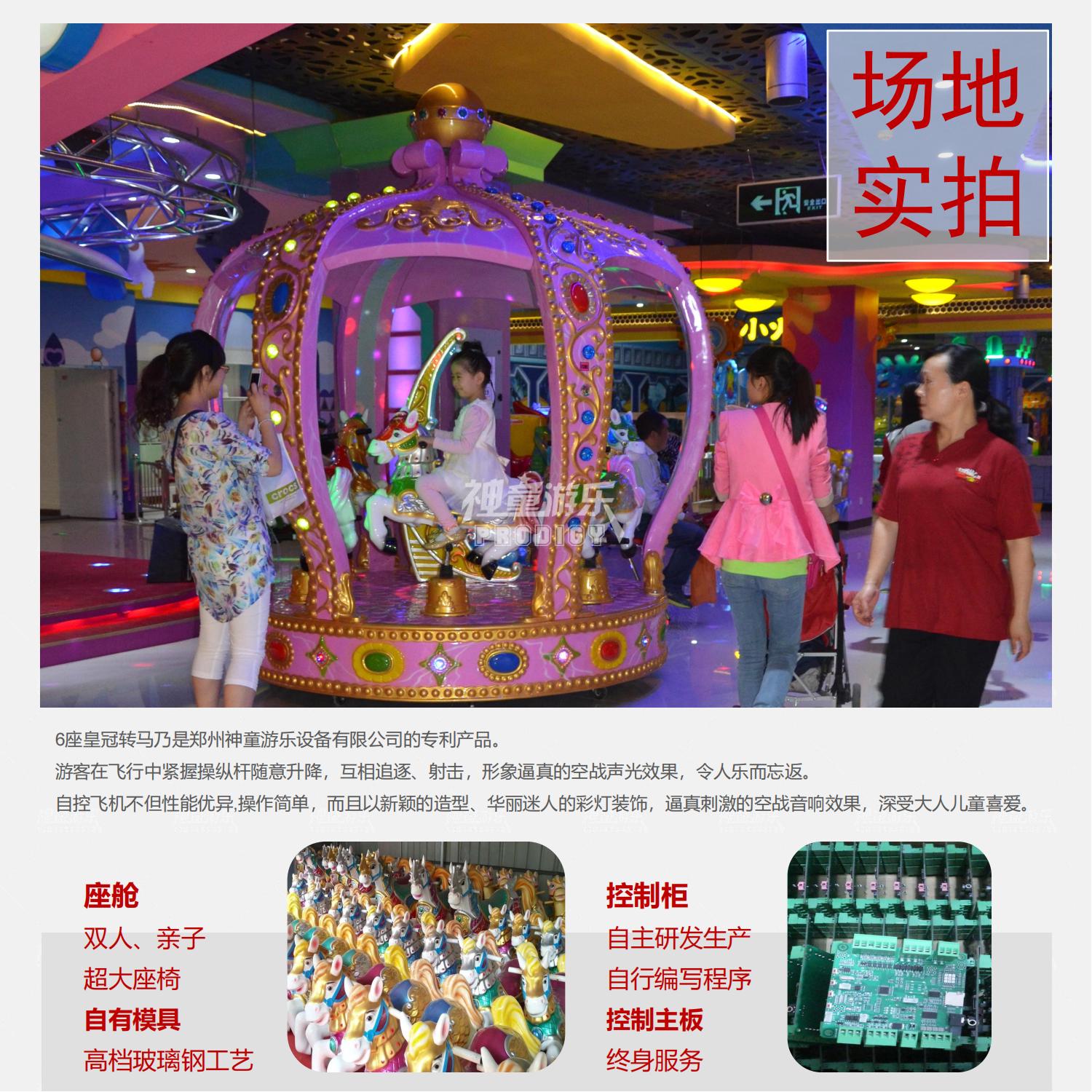 6座皇冠轉馬乃是鄭州神童游樂設備有限公司的專利產品。 游客在飛行中緊握操縱桿隨意升降,互相追逐、射擊,形象逼真的空戰聲光效果,令人樂而忘返。 自控飛機不但性能優異,操作簡單,而且以新穎的造型、華麗迷人的彩燈裝飾,逼真刺激的空戰音響效果,深受大人兒童喜愛。
