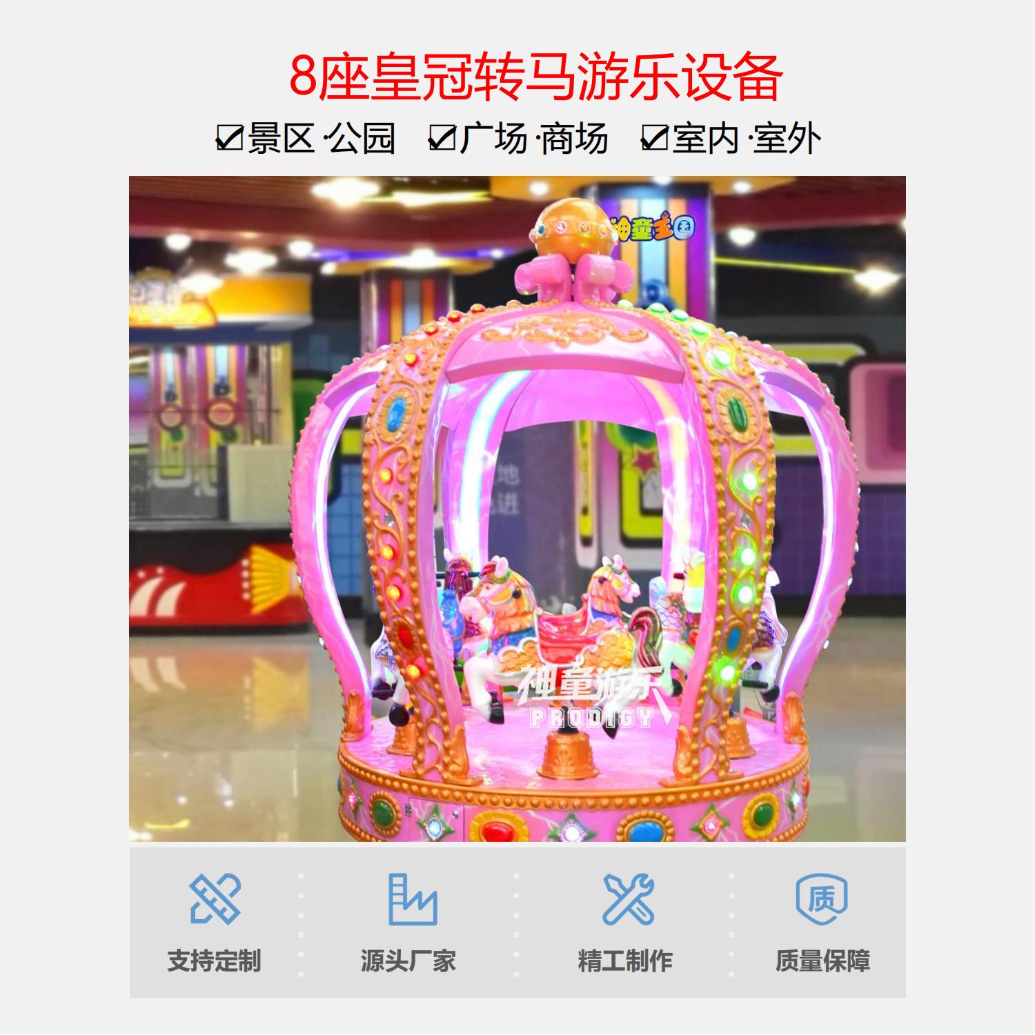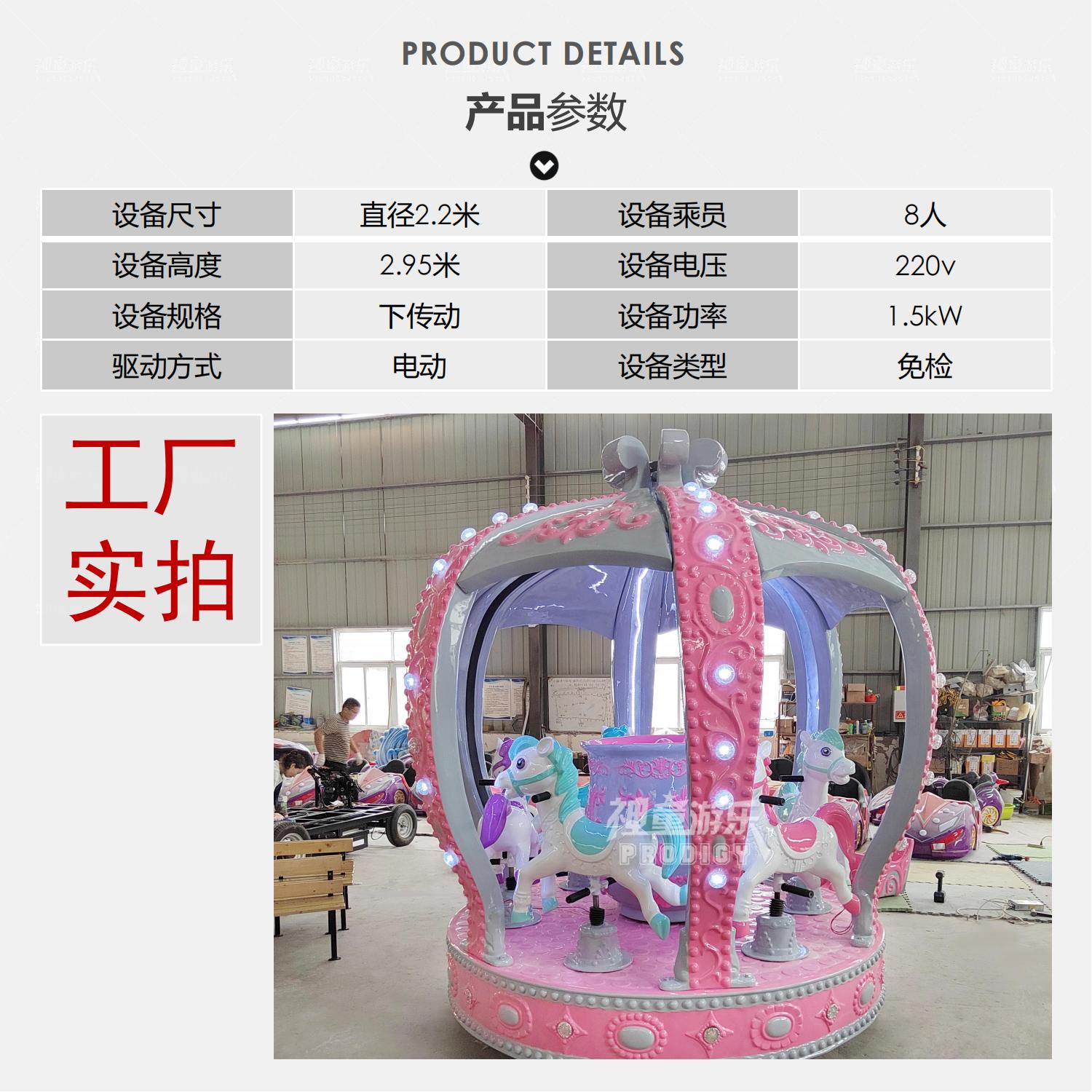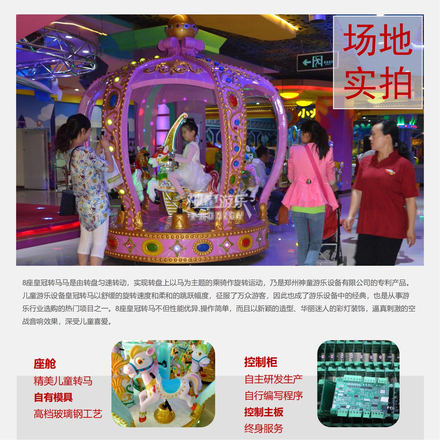 8座皇冠轉(zhuǎn)馬馬是由轉(zhuǎn)盤勻速轉(zhuǎn)動,實現(xiàn)轉(zhuǎn)盤上以馬為主題的乘騎作旋轉(zhuǎn)運動,乃是鄭州神童游樂設(shè)備有限公司的專利產(chǎn)品。兒童游樂設(shè)備皇冠轉(zhuǎn)馬以舒緩的旋轉(zhuǎn)速度和柔和的跳躍幅度,征服了萬眾游客,因此也成了游樂設(shè)備中的經(jīng)典,也是從事游樂行業(yè)選購的熱門項目之一。8座皇冠轉(zhuǎn)馬不但性能優(yōu)異,操作簡單,而且以新穎的造型、華麗迷人的彩燈裝飾,逼真刺激的空戰(zhàn)音響效果,深受兒童喜愛。