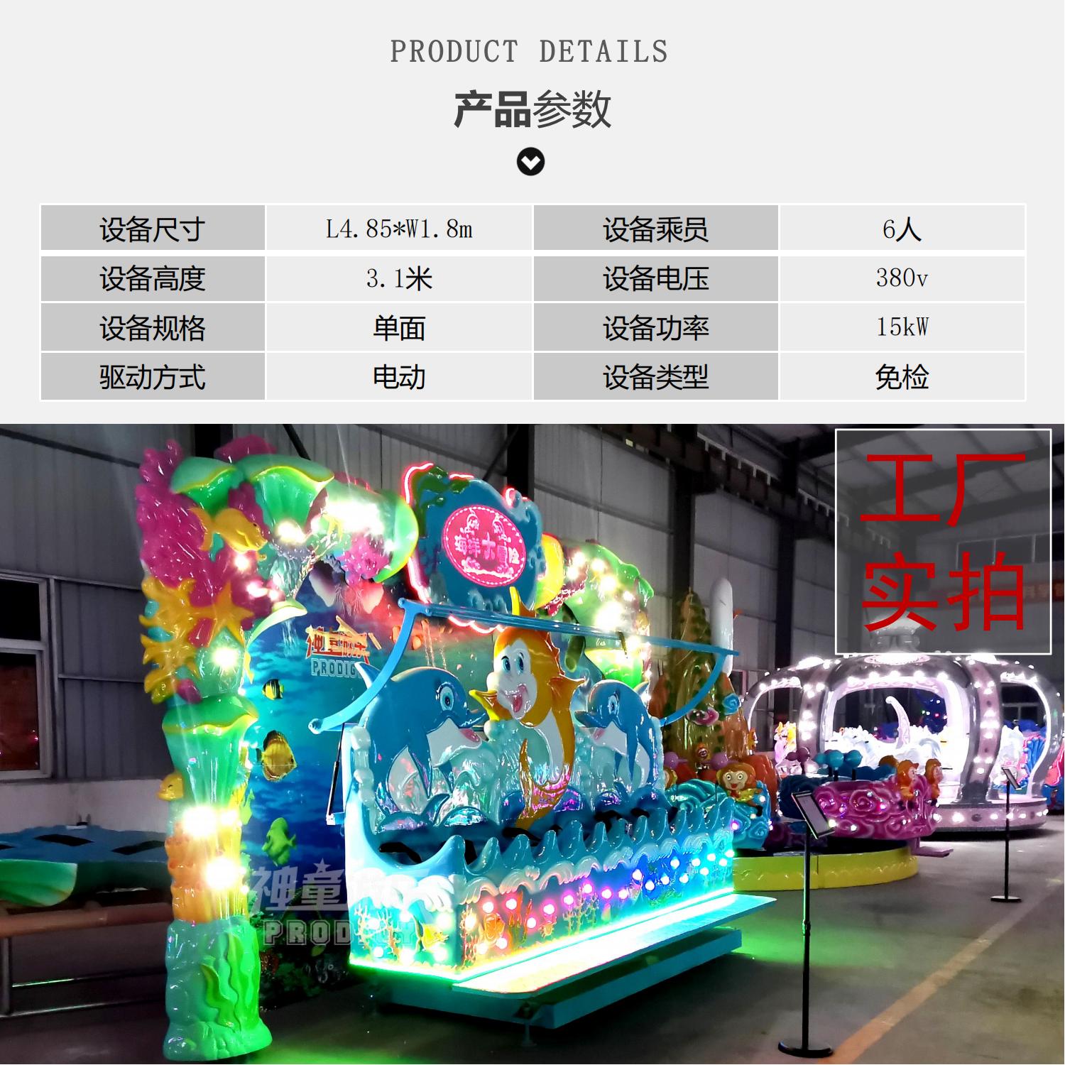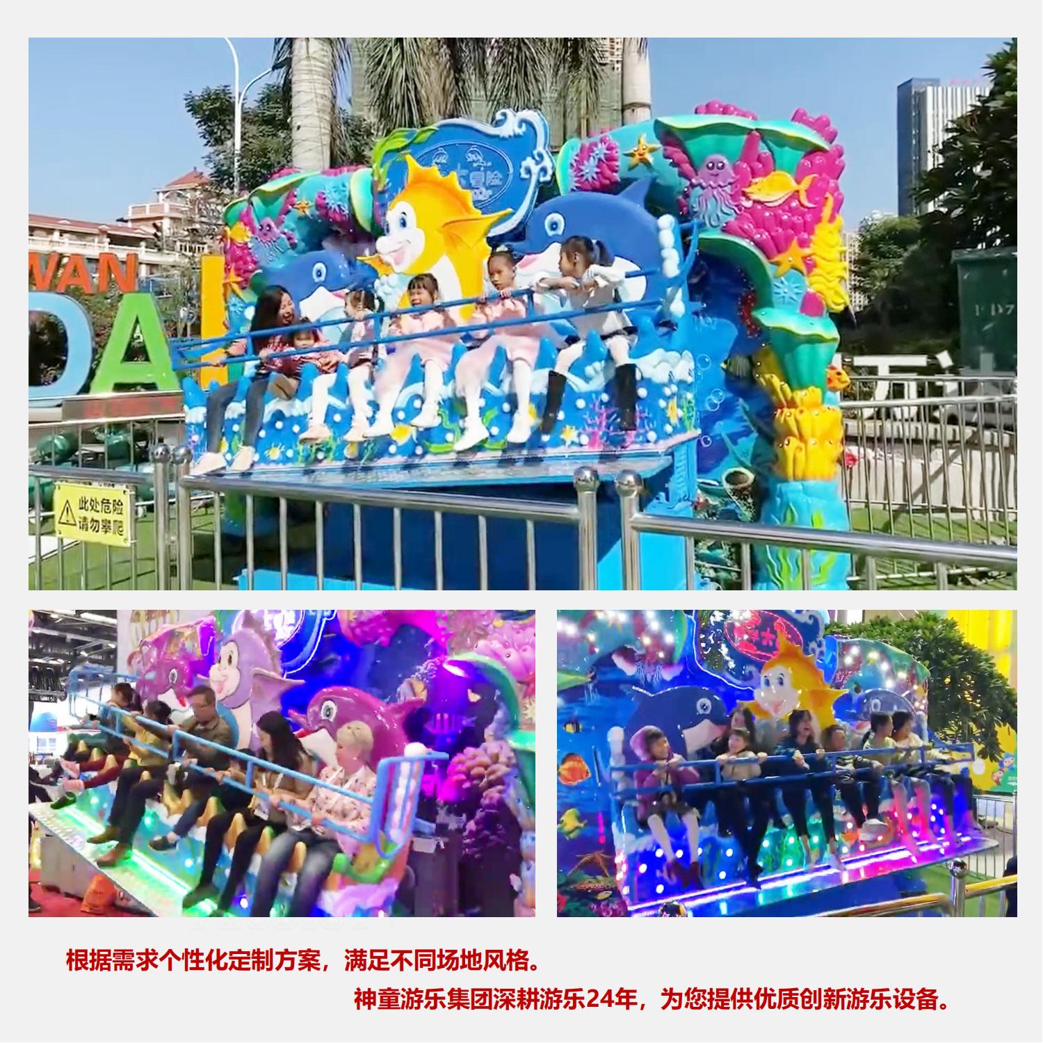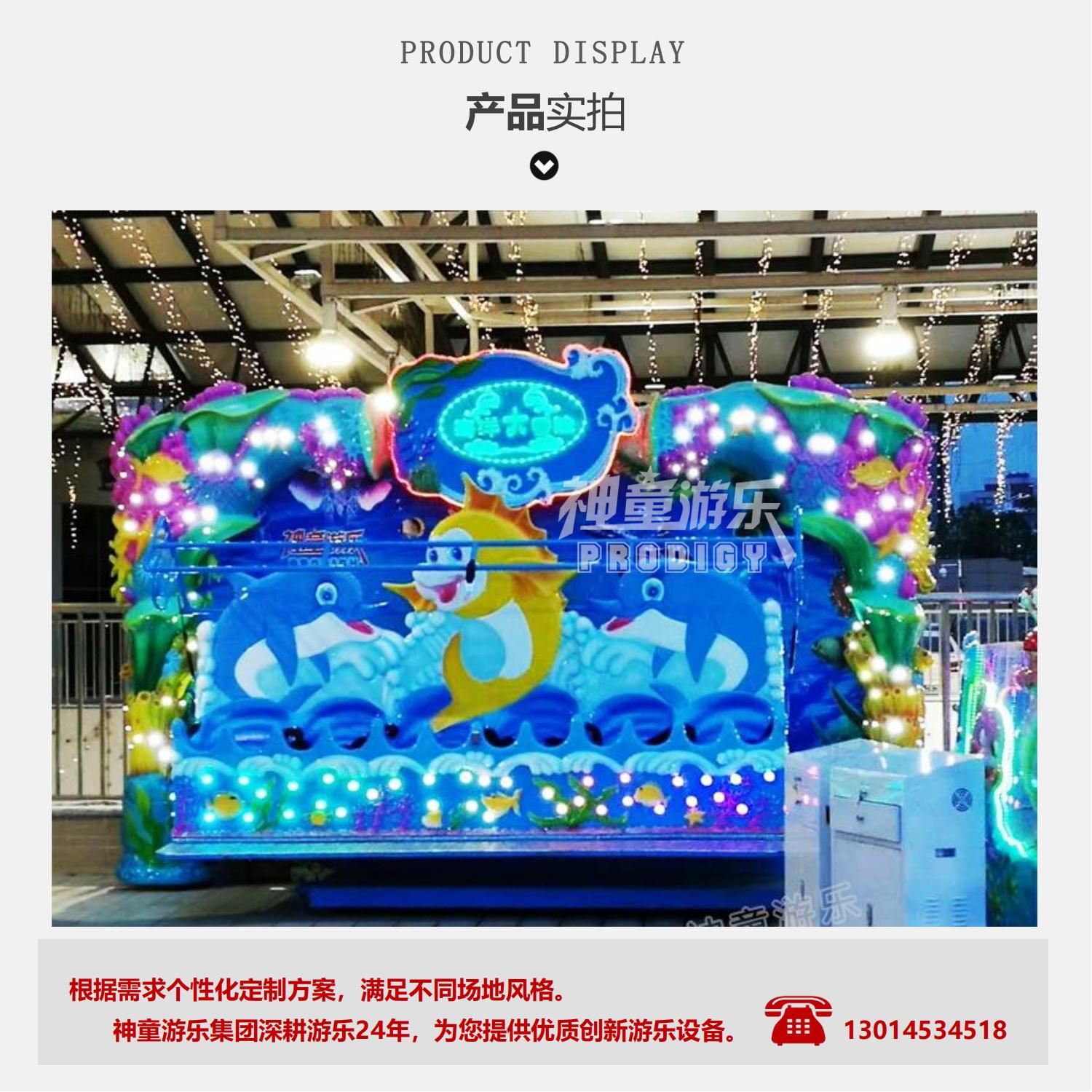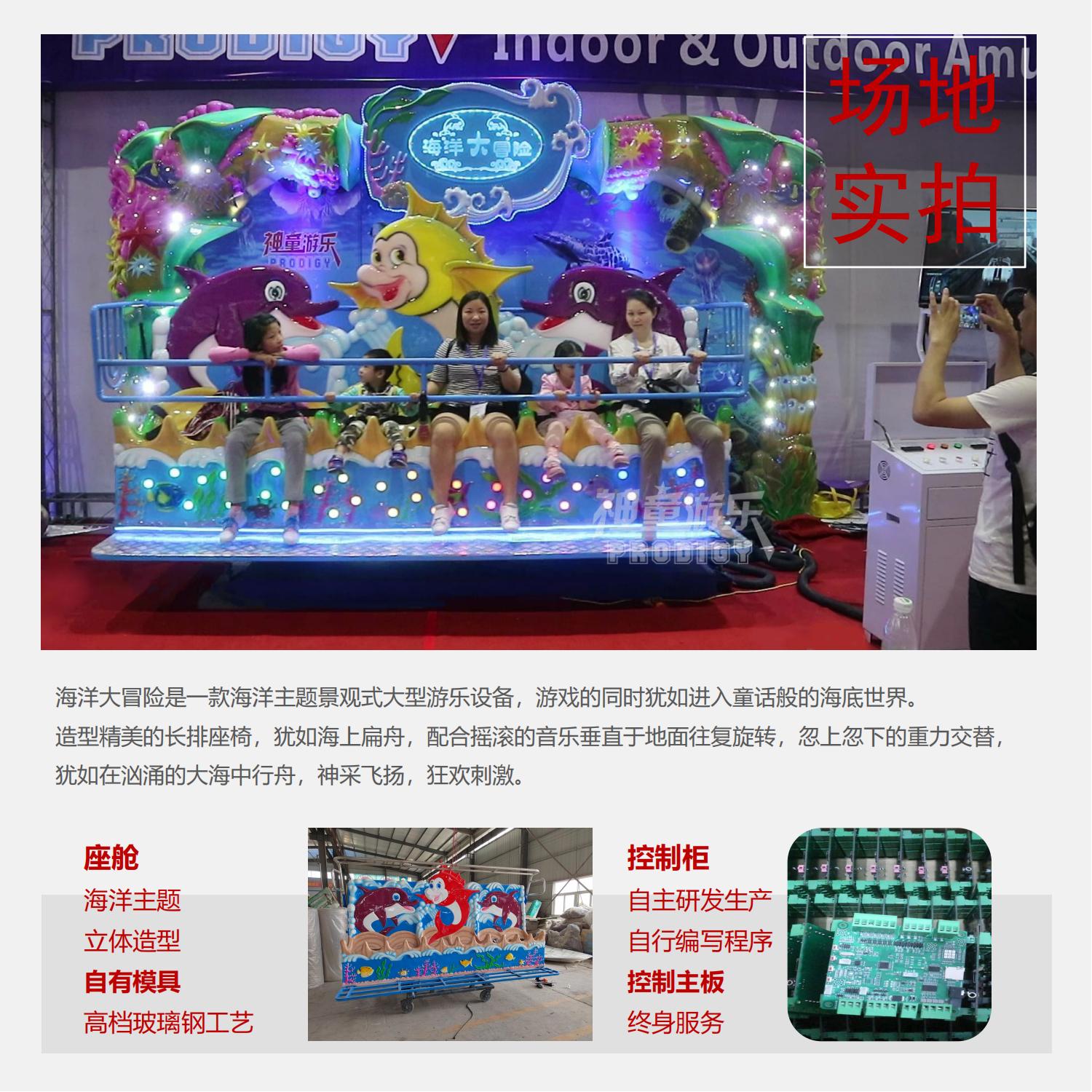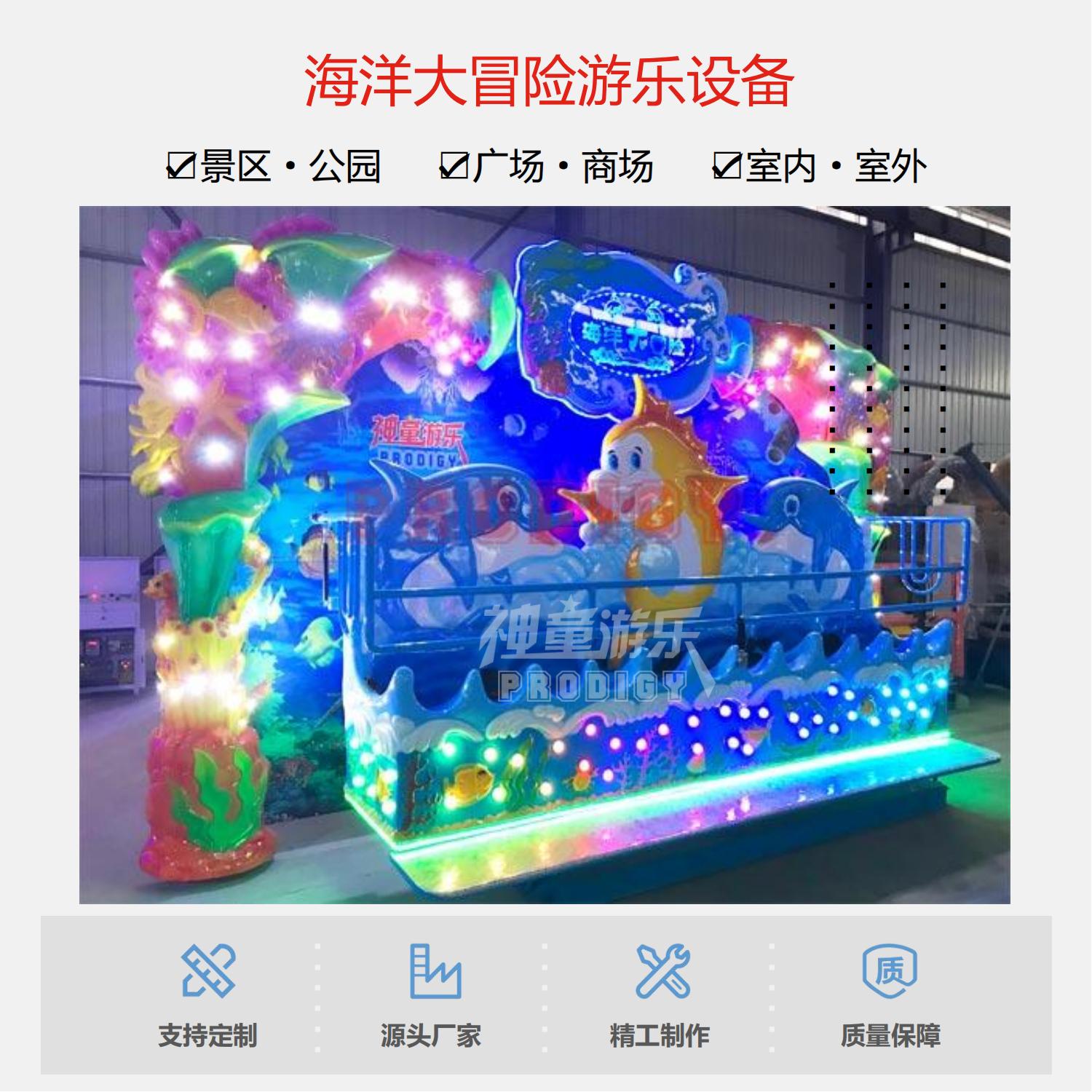 海洋大冒險是一款海洋主題景觀式大型游樂設備,游戲的同時猶如進入童話般的海底世界。造型精美的長排座椅,猶如海上扁舟,配合搖滾的音樂垂直于地面往復旋轉,忽上忽下的重力交替猶如在洶涌的大海中行舟,神采飛揚,狂歡刺激。