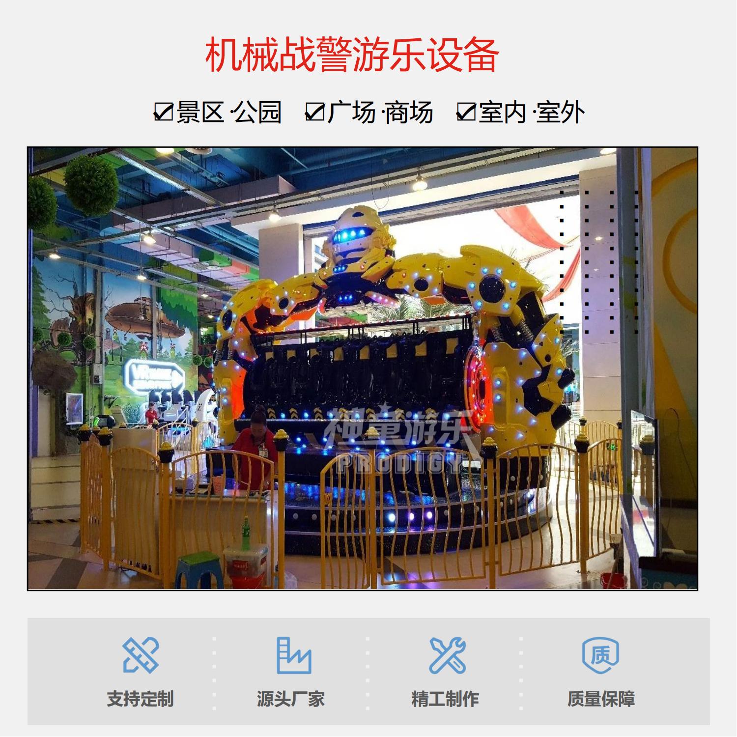 星際戰(zhàn)警是一款大型游樂場新款游樂設備項目,外觀雄偉壯觀,大氣十足,但是占地面積又不大,玩起來又非常的刺激,所以一經上市就受到投資者的追捧,游客坐在變形金剛的懷抱中,在加上U型壓杠和三點式安全帶的雙重保護下,那玩起來嗨的不行了,星際戰(zhàn)警運行平穩(wěn),噪音小,外觀設計巧妙,是一款非常刺激好玩的新款游樂設施項目。