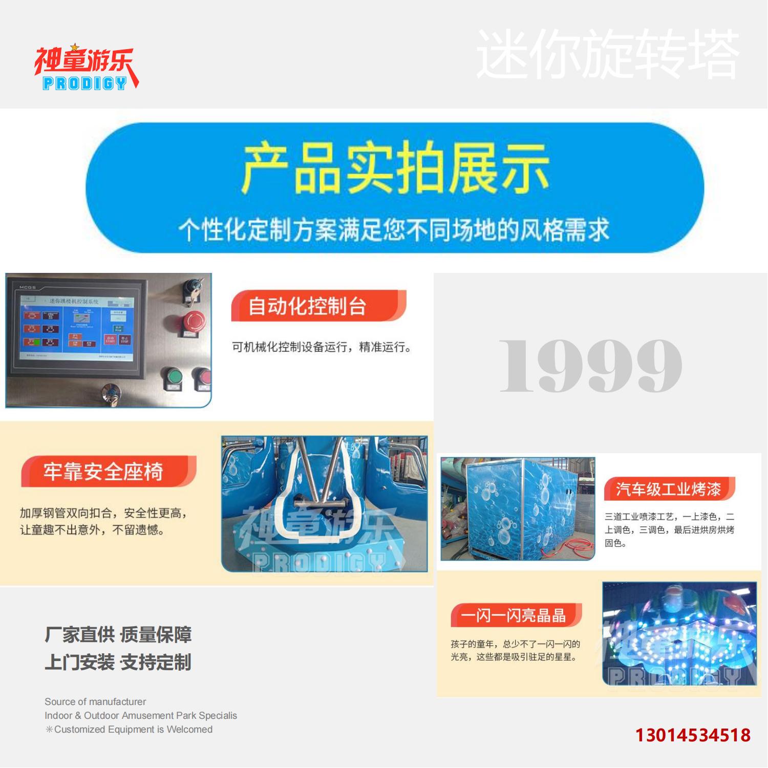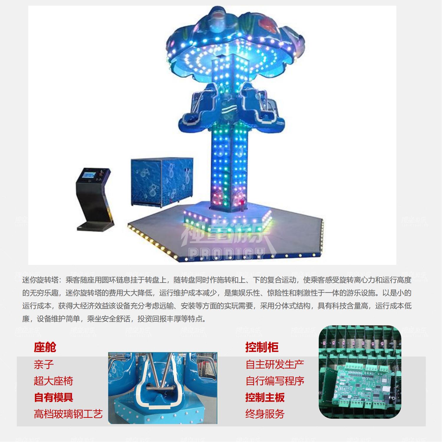 迷你旋轉(zhuǎn)塔:乘客隨座用圓環(huán)鏈息掛于轉(zhuǎn)盤(pán)上,隨轉(zhuǎn)盤(pán)同時(shí)作施轉(zhuǎn)和上、下的復(fù)合運(yùn)動(dòng),使乘客感受旋轉(zhuǎn)離心力和運(yùn)行高度的無(wú)窮樂(lè)趣,迷你旋轉(zhuǎn)塔的費(fèi)用大大降低,運(yùn)行維護(hù)成本減少,是集娛樂(lè)性、驚險(xiǎn)性和刺激性于一體的游樂(lè)設(shè)施。以是小的運(yùn)行成本,獲得大經(jīng)濟(jì)效益該設(shè)備充分考慮遠(yuǎn)輸、安裝等方面的實(shí)玩需要,采用分體式結(jié)構(gòu),具有科技含量高,運(yùn)行成本低廉,設(shè)備維護(hù)簡(jiǎn)單,乘坐安全舒話,投資回報(bào)豐厚等特點(diǎn)。