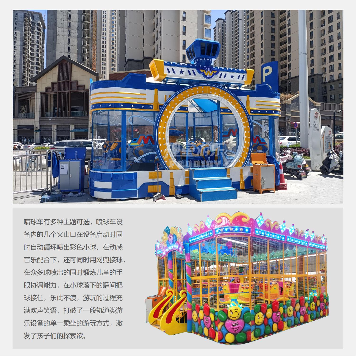 噴球車有多種主題可選,噴球車設(shè)備內(nèi)的幾個火山口在設(shè)備啟動時同時自動循環(huán)噴出彩色小球,在動感音樂配合下,還可同時用網(wǎng)兜接球,在眾多球噴出的同時鍛煉兒童的手眼協(xié)調(diào)能力,在小球落下的瞬間把球接住,樂此不疲,游玩的過程充滿歡聲笑語,打破了一般軌道類游樂設(shè)備的單一乘坐的游玩方式,激發(fā)了孩子們的探索欲。